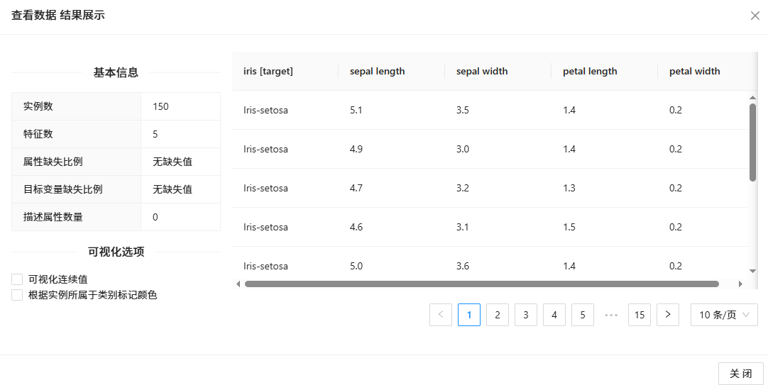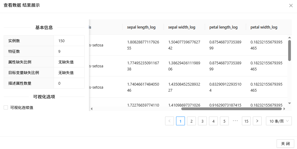 案例中加载 iris 示例数据集,特征转换"(Feature Transform) 控件参数如下: