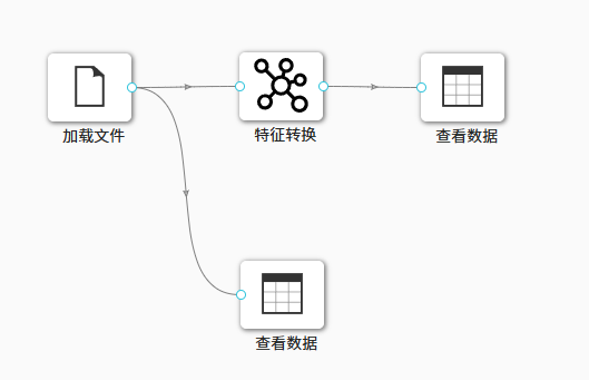 在下图所示的案例中,使用 “文件加载”(File) 控件加载数据,使用 特征转换"(Feature Transform) 给数据生成新特征,通过 “查看数据”(Data Table) 控件查看数据集内容。