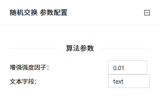 “随机交换”(Random Swap) 控件主要用于通过对文本数据进行随机词语交换来实现数据增强,提高模型的泛化能力。