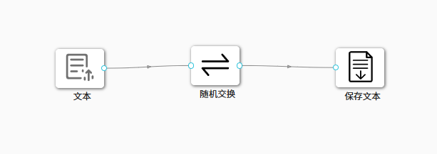 在下图所示的案例中,使用 “文本”(Text) 控件加载数据,使用 “随机交换”(Random Swap) 随机交换词语,通过 “保存文本”(Save Text) 控件将增强后的数据保存。