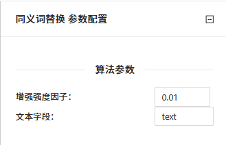 点击 “同义词替换”(Synonym Replacement) 控件查看参数配置页面,如下图所示: